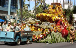 カラカウア大通りを美しいハワイの花に飾られた山車、乗馬チーム、フラダンサー、鼓笛隊などが行進。アロハフェスティバルのメインイベントでもある華やかなパレードです。朝9時アラモアナ公園を出発、カラカウア通りを経由しカピオラニ公園まで約2時間にわたり開催されます。